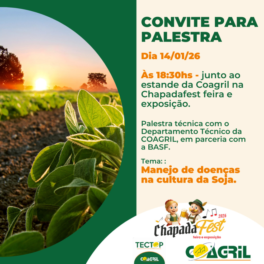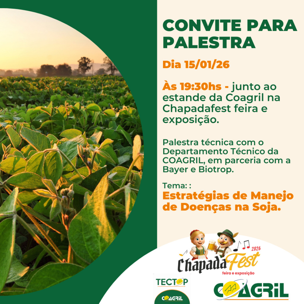 A COAGRIL convida todos os seus associados, clientes e a comunidade em geral para visitarem o estande da COAGRIL na Chapadafest/Feira e Exposição, que acontece de 14 a 18 de janeiro de 2026.