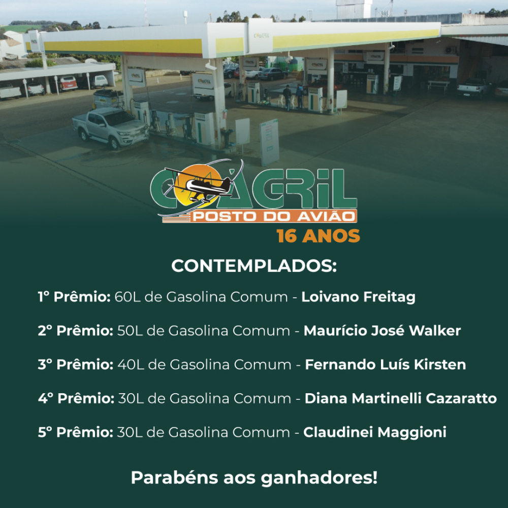 SORTEIO COAGRIL POSTO DO AVIÃO 16 ANOS