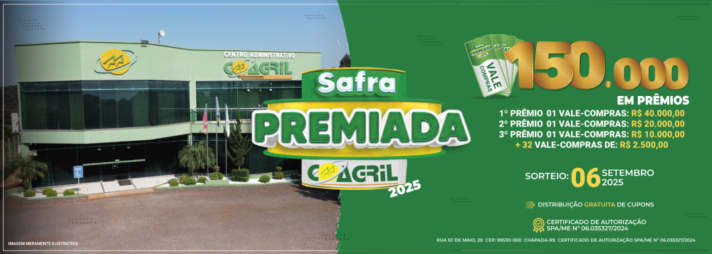 A participação na promoção SAFRA PREMIADA COAGRIL 2026 é exclusiva para associados da Cooperativa dos Agricultores de Chapada Ltda e acontece da seguinte forma: